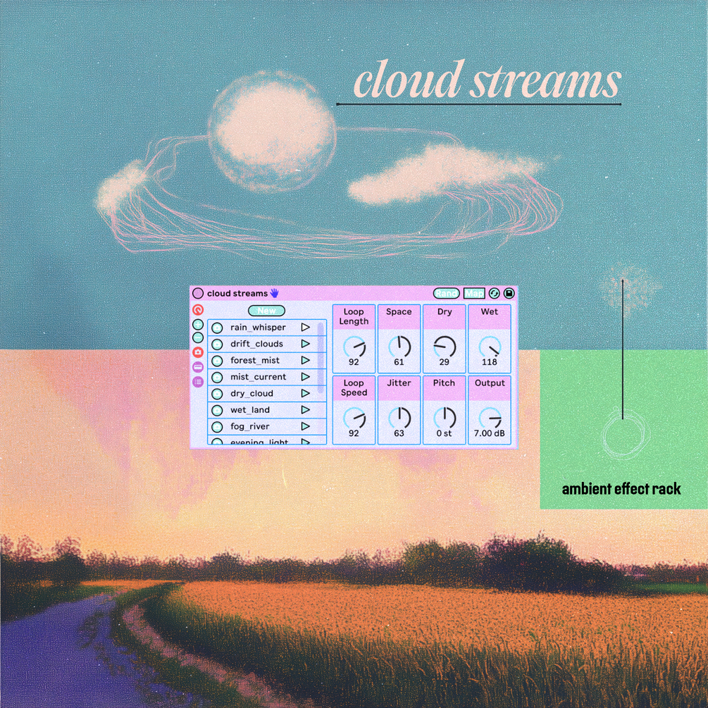 Transform simple sounds into lush, evolving soundscapes with cloud streams. This Ableton Live effect rack uses multiple modulated stock devices to create organic textures perfect for ambient music.